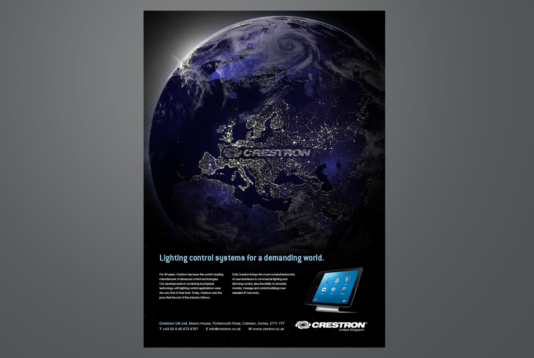 Crestron make control systems that unify contrasting technologies in buildings to make them work together intelligently, help lower running costs and boost efficiency. They required a press advert to help promote their lighting control systems to a consumer audience in an exciting and creative way.