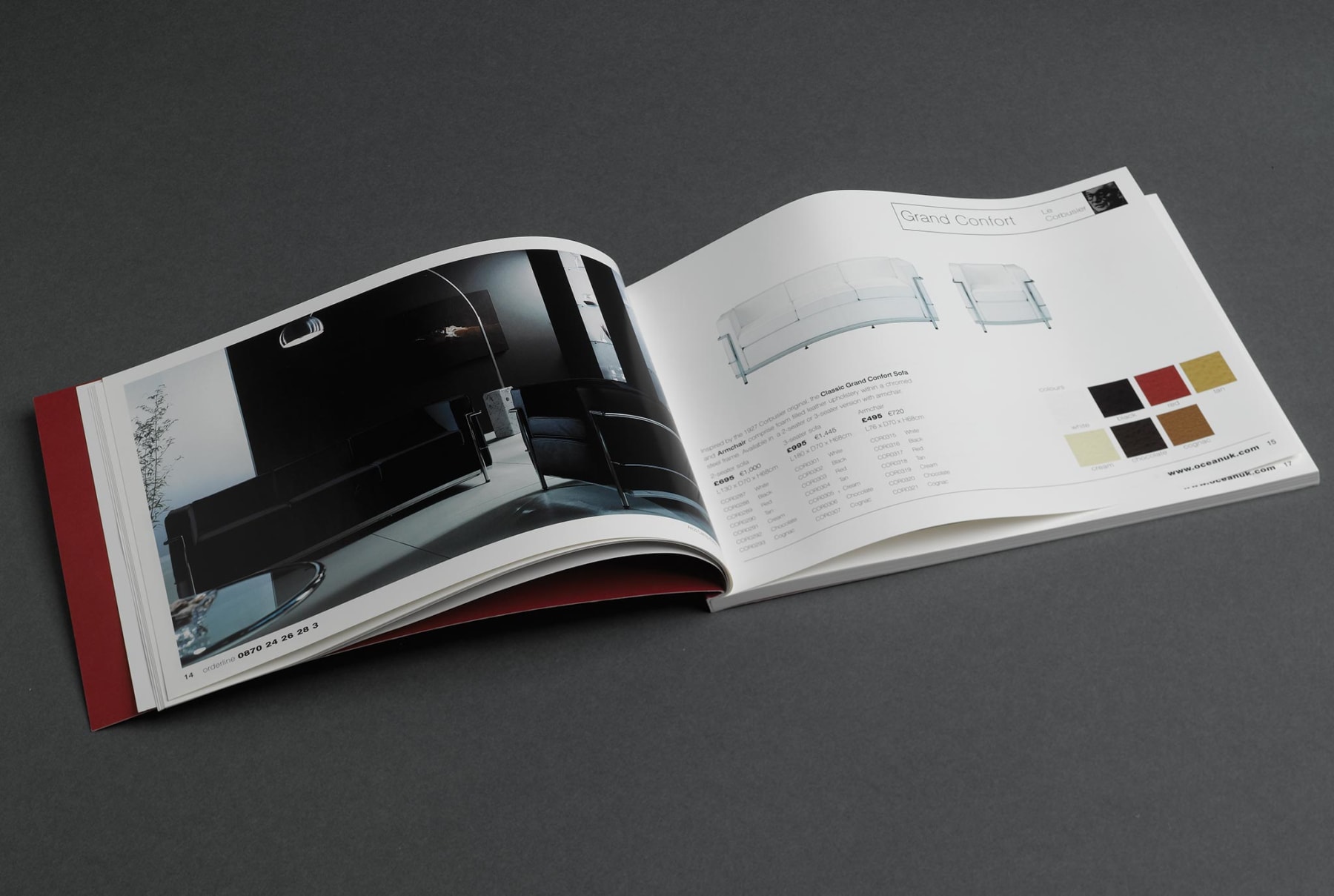 Ocean sells furniture to enhance luxury contemporary interiors with replicas of icon designer pieces. A highly finished and modern catalogue design was required to promote and sell these fantastic products.
