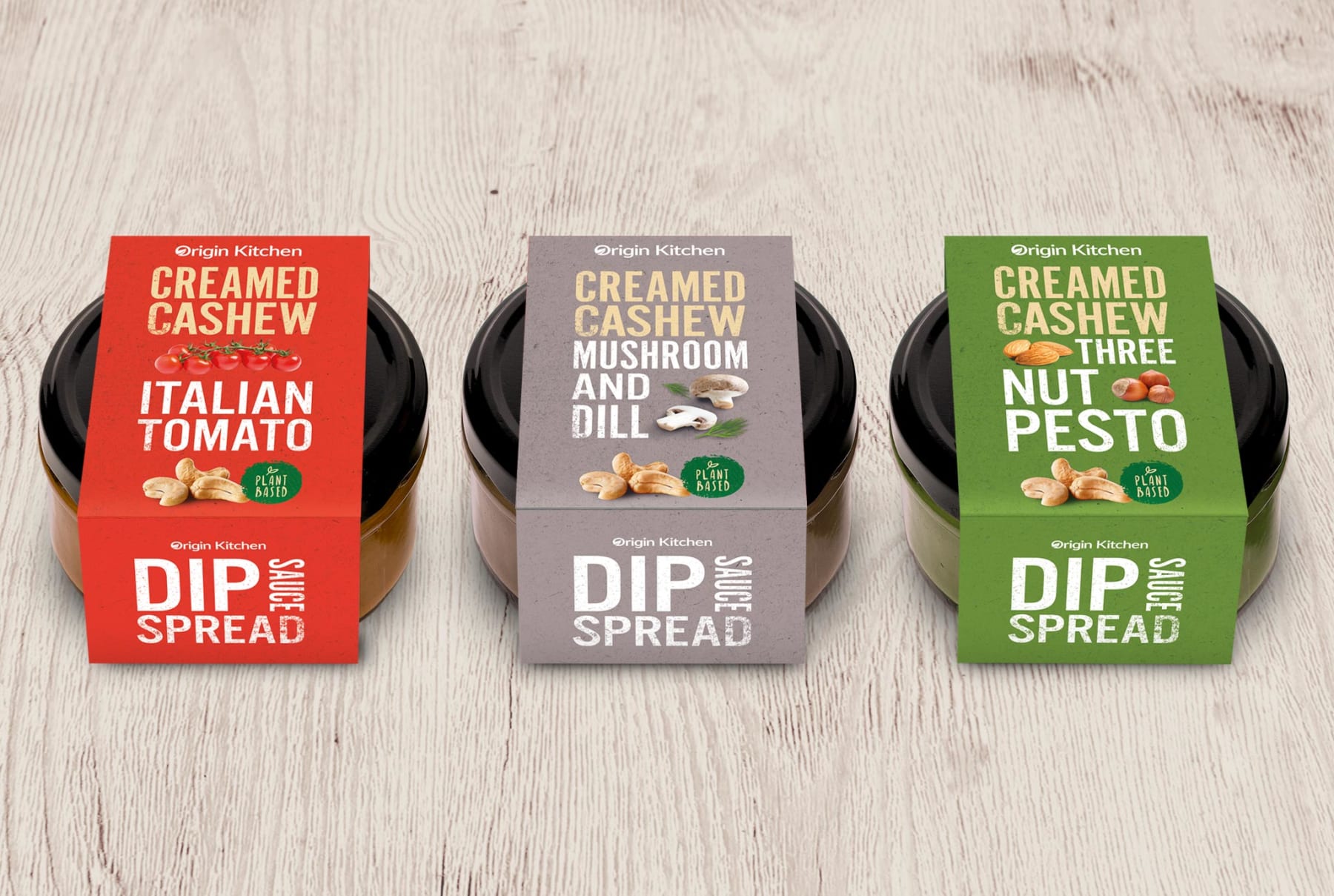 Origin Kitchen make amazing planted based food with a commitment to reducing environmental impact and ethically sourcing all ingredients.  They needed a company brand refresh and packaging design for the launch of their new creamed cashew range.